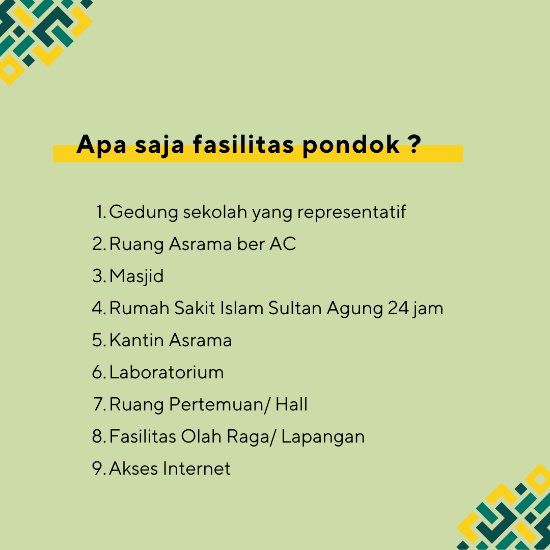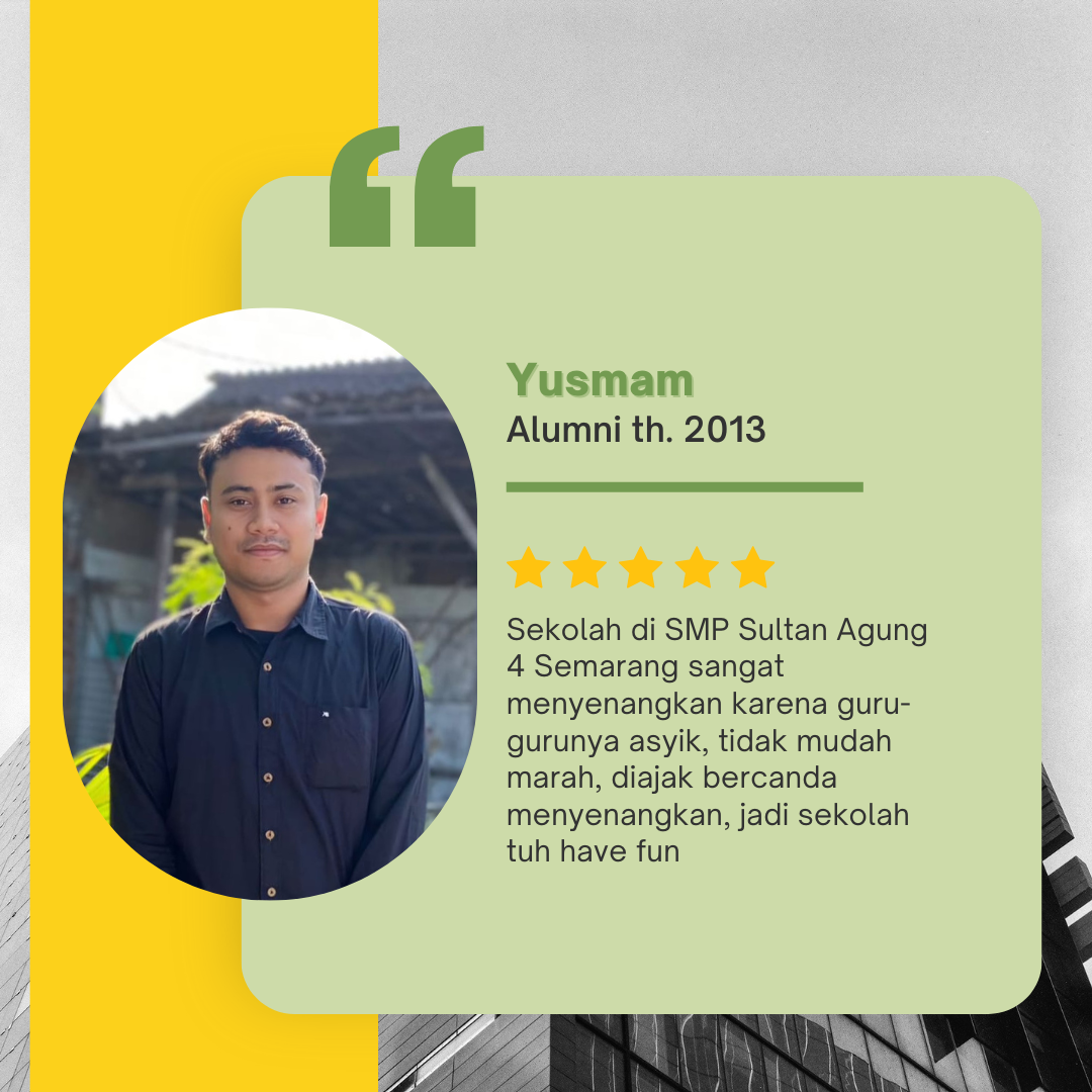 SMP Islam Sultan Agung 4 Boarding School adalah solusi pendidikan yang tepat bagi putra putri Anda untuk mendapatkan pengetahuan Agama, Berkarakter Mulia, Mandiri, Berprestasi dan Berjiwa Kepemimpinan